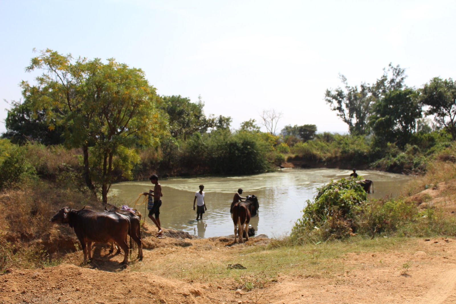 ಹಸು ಎಮ್ಮೆಗಳಿಗೆ ಸ್ನಾನ ಮಾಡಿಸುತ್ತಿದ್ದುದನ್ನು ನೋಡಿದೆವು. ಕೆರೆ ಬಳಿ ಕಲ್ಲಿನಲ್ಲಿ, ‘ಪರಿಸರ ಸಂರಕ್ಷಣೆ ನಾಗರಿಕರ ಹೊಣೆ’, ಧರ್ಮರಾಯ ಅರಣ್ಯದಲ್ಲಿದ್ದರೂ ಧರ್ಮಪಾಲನೆಯಲ್ಲಿದ್ದರು, ದುರ್ಯೋಧನ ಅರಮನೆಯಲ್ಲಿದ್ದರೂ ದುಷ್ಟತನದಲ್ಲಿದ್ದರು’